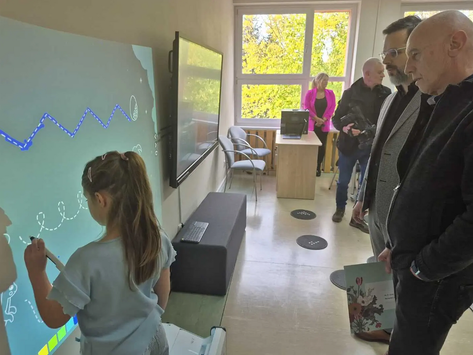 - To będzie mega przestrzeń dla uczniów naszej szkoły. Były ławeczki, były pomoce dydaktyczne, ale dzięki hojności firmy Kronospan Polska możemy dysponować nowoczesnym sprzętem. Magiczny dywan, który sprawia, że dzieci mogą bawić się i grać. Są też monitory interaktywne. A to nie tylko zabawa, to również programy związane z edukacją. Na przykład matematyka, język angielski. Wczoraj sama doświadczałam, próbowałam.