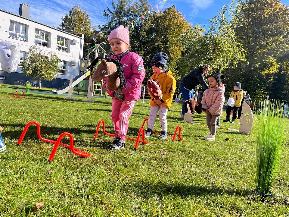 Dzięki wsparciu firmy Kronospan Polska przedszkole wzbogaciło się o przeszkody i hobby horses, które pozwolą dzieciom rozwijać sprawność fizyczną, uczyć się zdrowej rywalizacji i - kto wie - może odkryć w sobie prawdziwe talenty sportowe? Dla niektórych to także pierwsza przygoda z jazdą konno, na własnym, drewnianym rumaku!